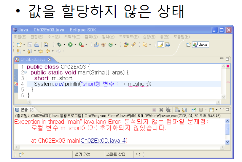 ☞ 논리형 상수 = true와 false만 가진다. boolean a=true;