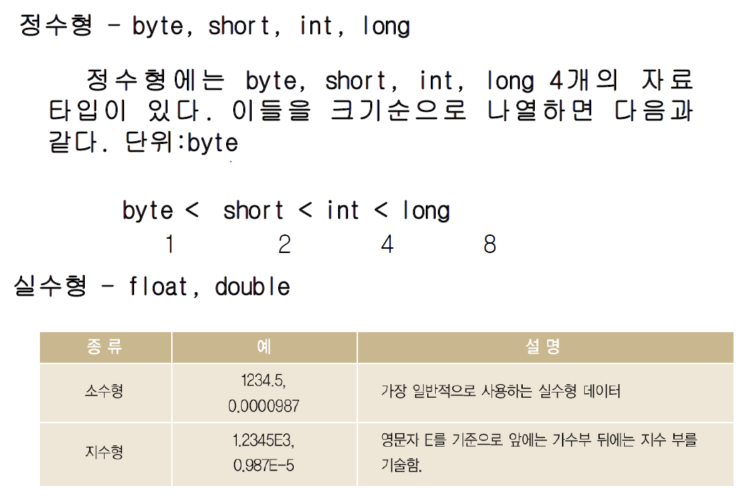 –와 같이 소수점이 없는 데이터가 정수형이다.