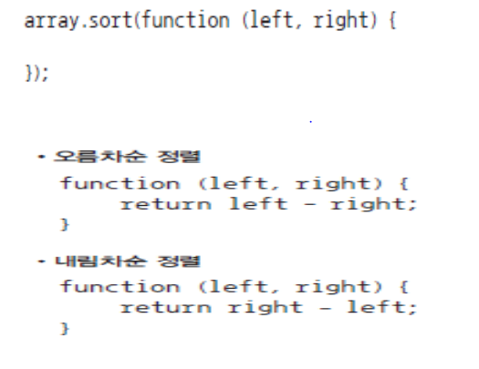 ★변화를 주고 싶을 때는 sort() 메서드의 매개 변수로 함수 넣음