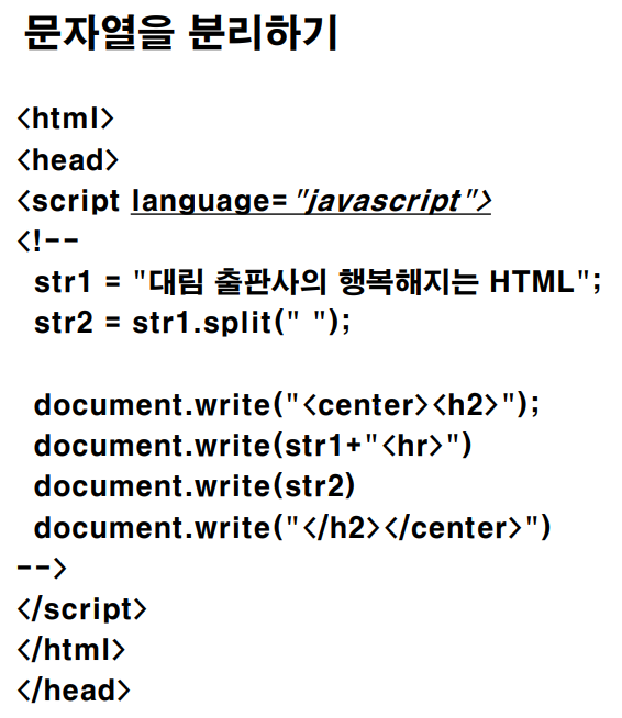 문자열을 분리하는 기준은 split( ) 메소드의 매개변수에 기술한 문자로 함