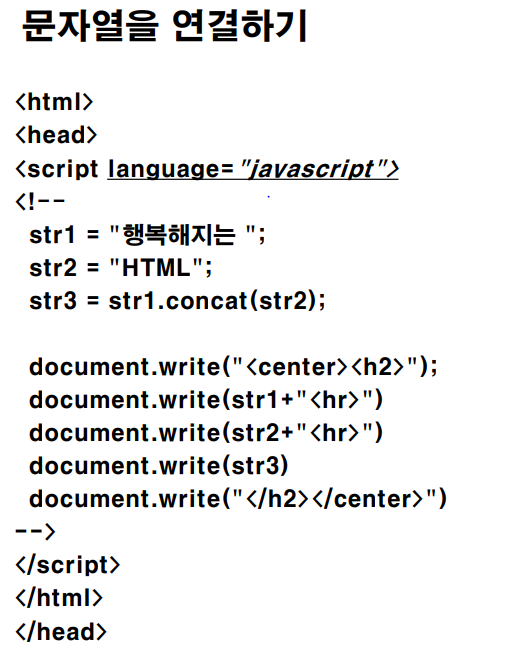 concat( ) 메소드는 문자열에 뒤에 또 다른 문자열을 연결시킬 때 사용하는 메소드