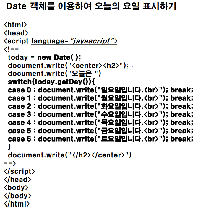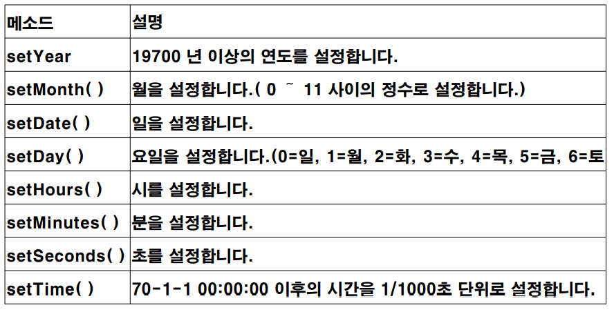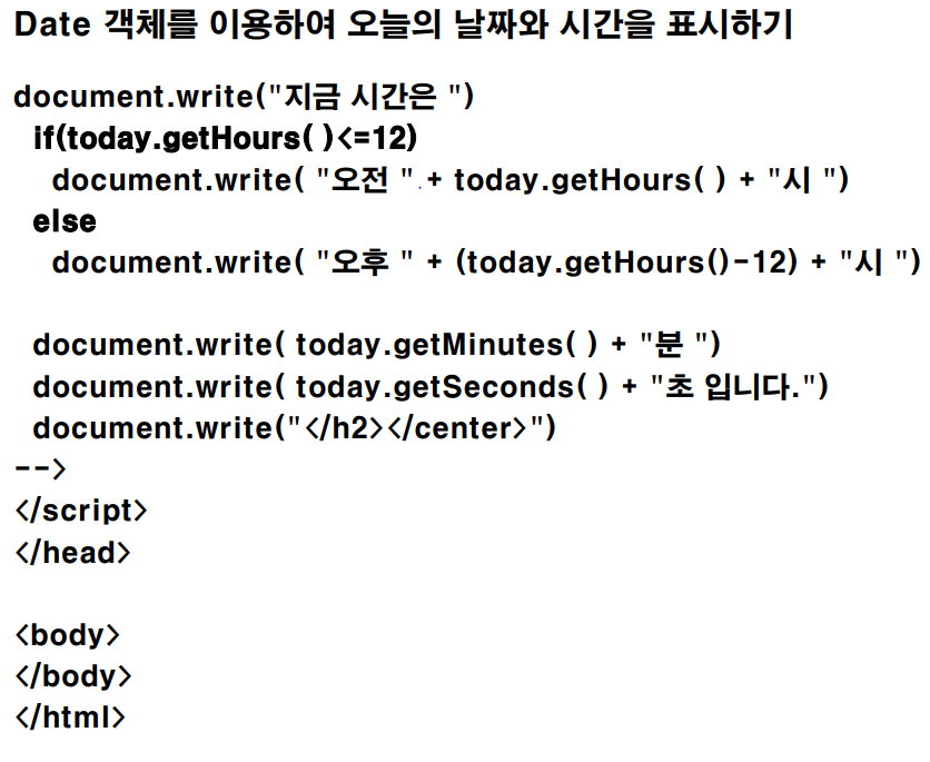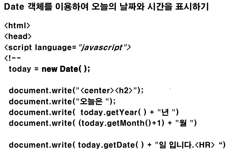 객체명 = new Date(년, 월, 일, [, 시[, 분[, 초[, 밀리초]]]);